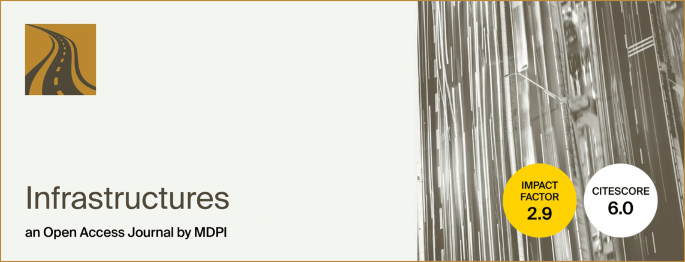 The year 2026 marks the 10th anniversary of Infrastructures, a peer-reviewed open access journal on infrastructure engineering. With an Impact Factor of 2.9 and a CiteScore of 6.0, the journal is covered in Scopus, ESCI (Web of Science), Inspec and other databases. The journal has published more than 1300 papers from more than 4400 authors. More than 3000 reviewers have reviewed the journal at least once. We equally value the contributions made by our editors, authors, and reviewers.